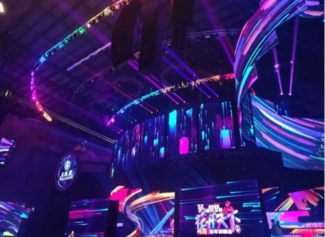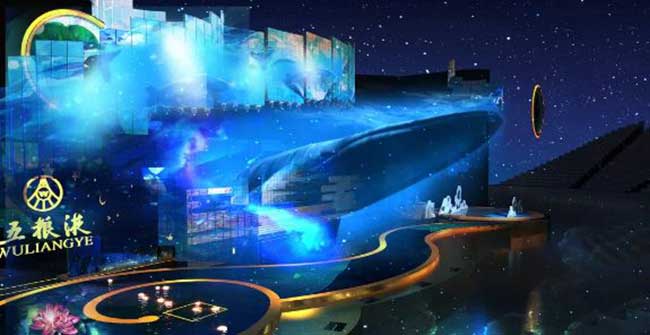 相信很多观众都被四川卫视的舞台效果震感到了,尤其是其美轮美奂的身临其境之感。例如舞台对水的表达,水的表达是科技的,用地面屏幕( 由酷游九州提供的地转屏P4.81)的形式,将舞台的平面作为视觉表现的媒体平台,用视频内容去烘托展现艺人的表演,将平面立面的舞台视觉呈现来增强舞台的空间表现关系。