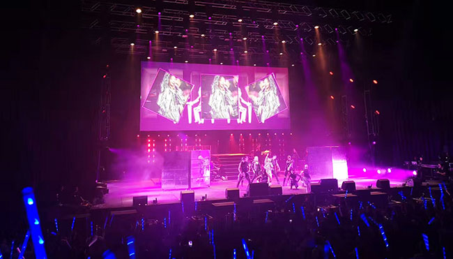 LED大屏幕,侧方以两个LED小屏为辅助。这三块显示屏均采用酷游九州自主研发的租赁屏P4.81,500X500mm的箱体尺寸,轻松实现拼接要求,模组前后维护,智能显示模块,产品使用稳定,通过利用现代声光电的渲染,在产生强烈的舞台艺术效果的同时也不喧宾夺主。