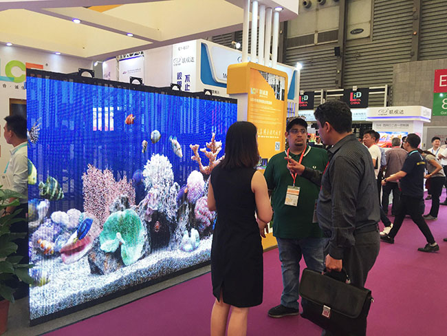 展区内众多LED展品精致独特,品类丰富,极具前瞻性的技术型产品和应用解决方案让观展者耳目一新,大气的舞台LED显示屏、炫彩的地砖屏、通透的镂空屏……将产品的优势展现得淋漓尽致,霸气、自信与实力尽显!前来咨询的客商更是络绎不绝,愉快的交流,耐心的解答,无一不让观展者感受到与众不同。